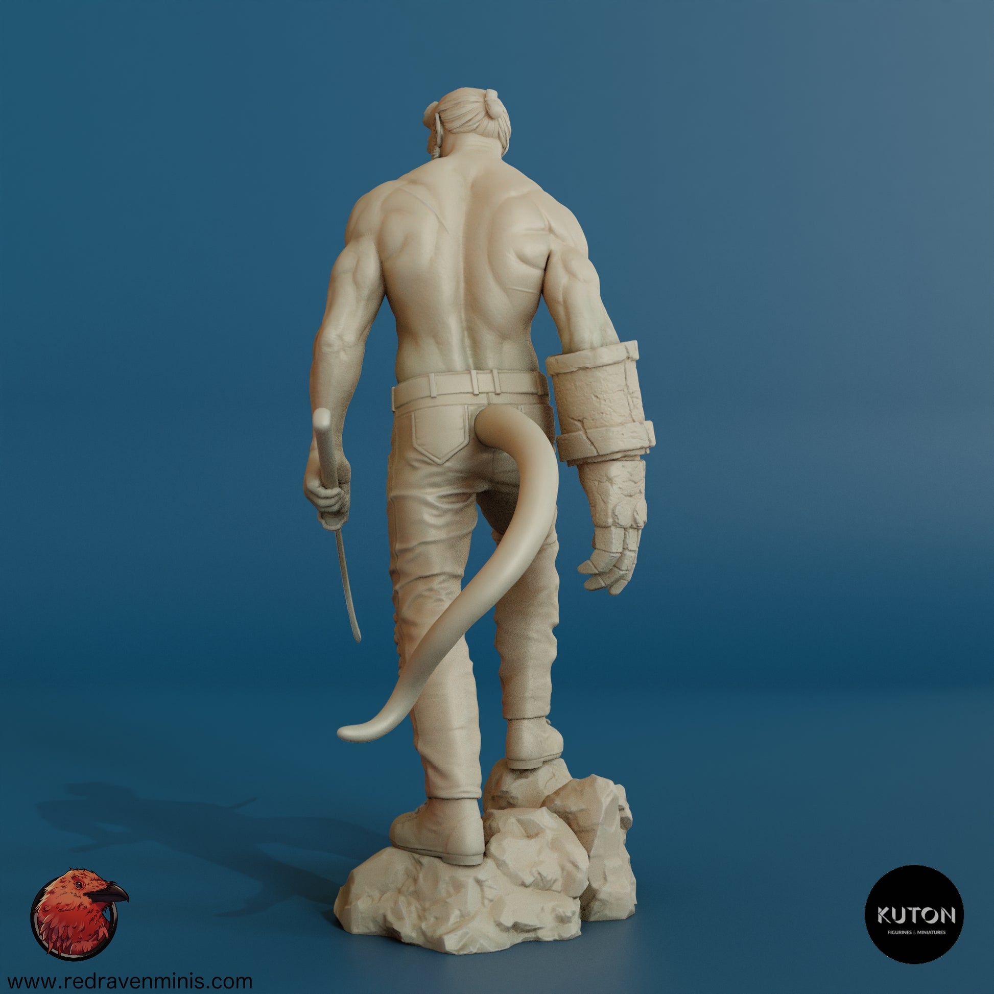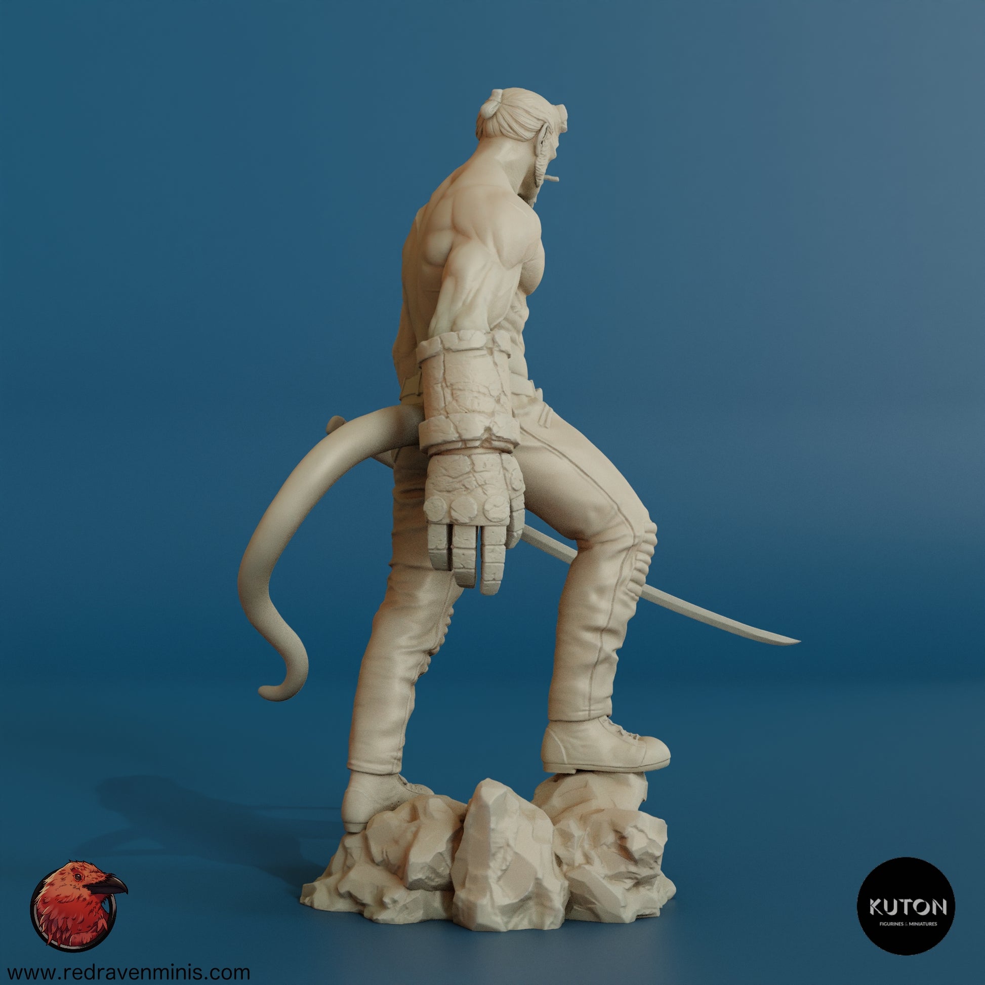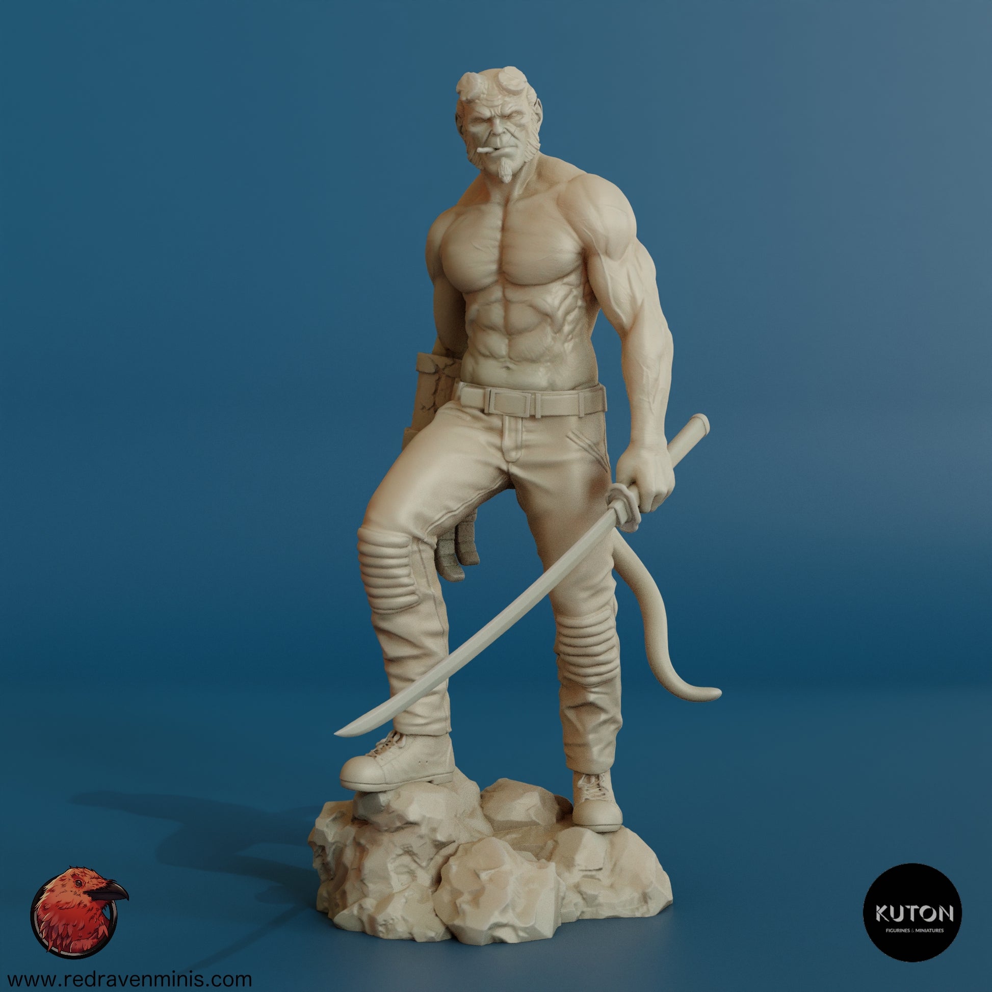 Hellboy is a well-meaning half-Demon whose true name is Anung Un Rama ("and upon his brow is set a crown of flame"), Hellboy was summoned from Hell to Earth as a baby by Nazi occultists. In time, Hellboy grew to be a large, red-skinned adult with a tail, horns (which he files off, leaving behind circular stumps on his forehead), cloven hooves for feet, and an oversized right hand made of stone (the "Right Hand of Doom"). Although a bit gruff, he shows none of the malevolence thought to be intrinsic to classical demons and has an ironic sense of humor.