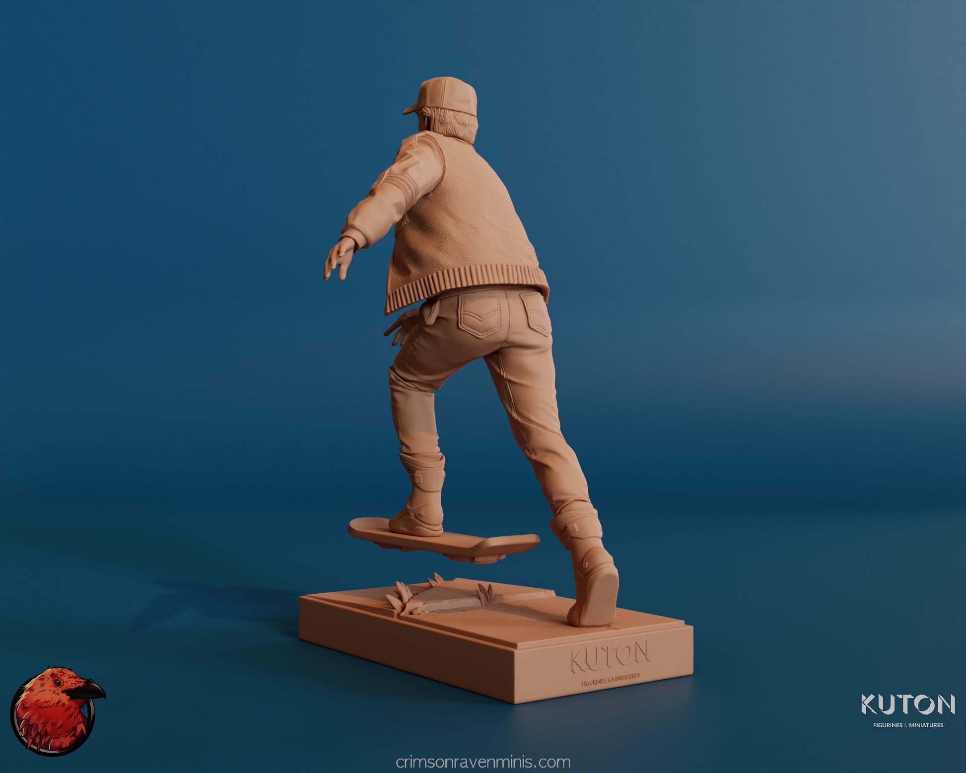 This kit features Marty McFly in his futuristic outfit, complete with his self-drying jacket and high-top sneakers. He is dynamically posed on the hoverboard, capturing the exhilarating moment of Marty cruising through Hill Valley. Every detail, from the folds of his clothing to the expression on his face, is meticulously crafted to bring this iconic scene to life.