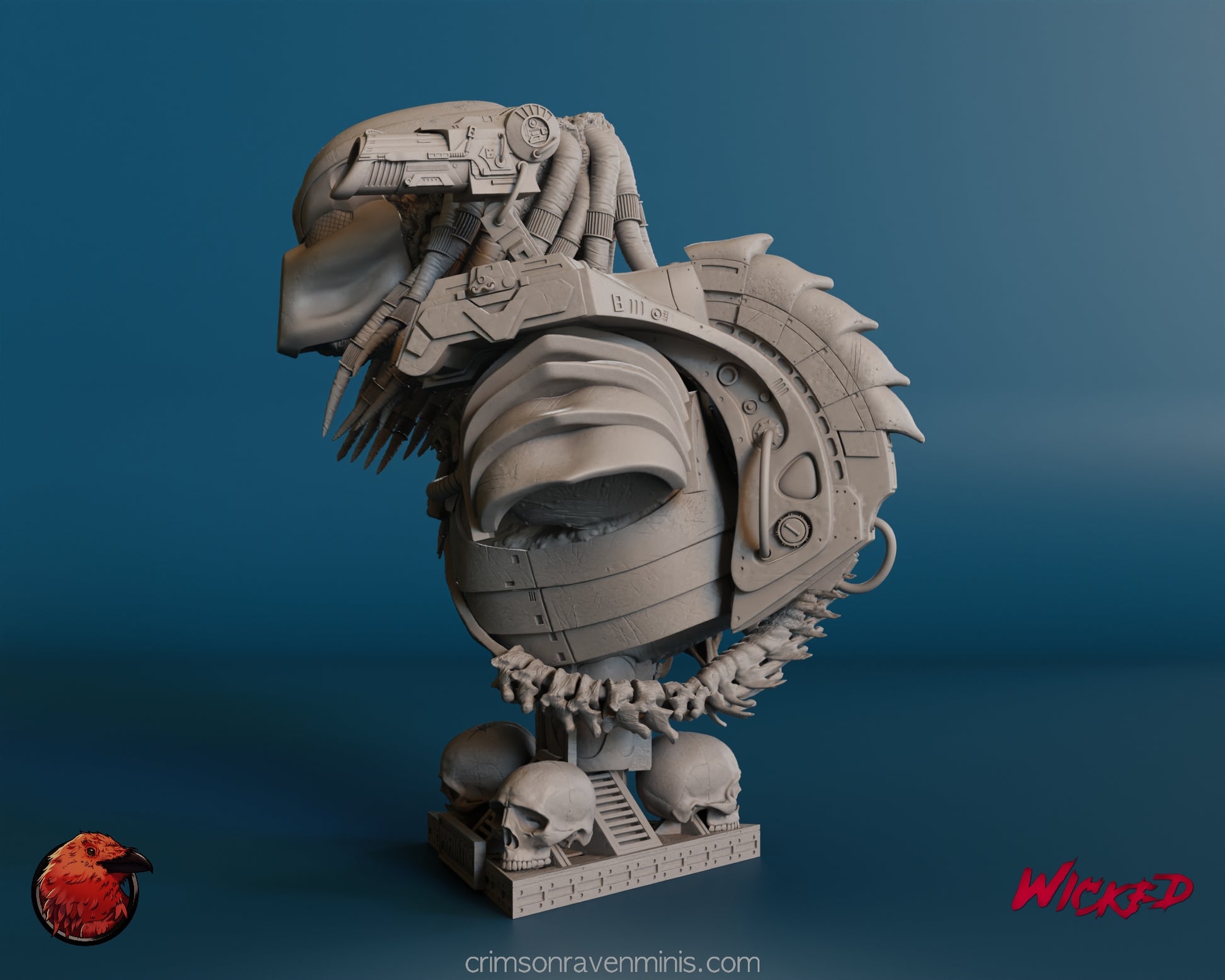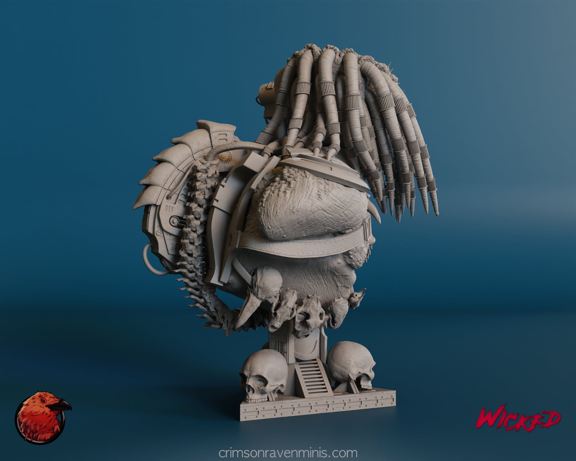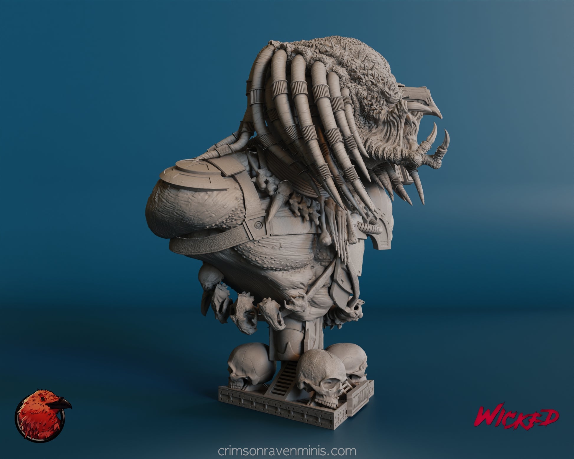 Toggle between the mystery of the masked conqueror and the primal ferocity of the unmasked portrait. With each swap, the Predator's legendary visage shifts, telling a new story of cosmic hunts and interstellar warfare. Molded in precise detail, the mechanical dreadlocks and intricate armor plating are a modeler's delight, offering hours of painting and customization potential. Below, a base adorned with haunting skulls cements the Predator's reputation as a trophy-collecting warrior from the stars.